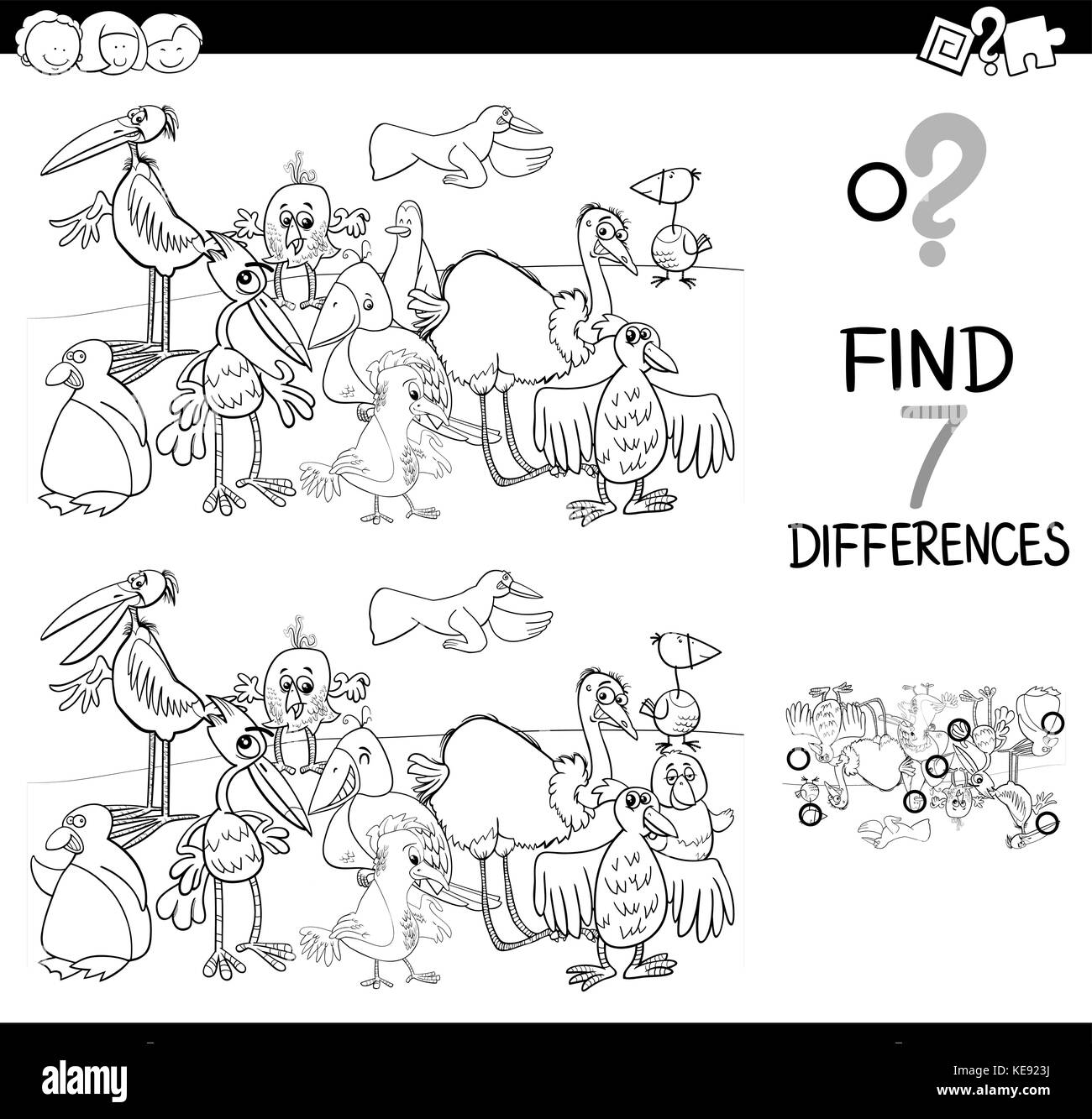 Ilustracion Caricatura En Blanco Y Negro De Buscar Las Diferencias