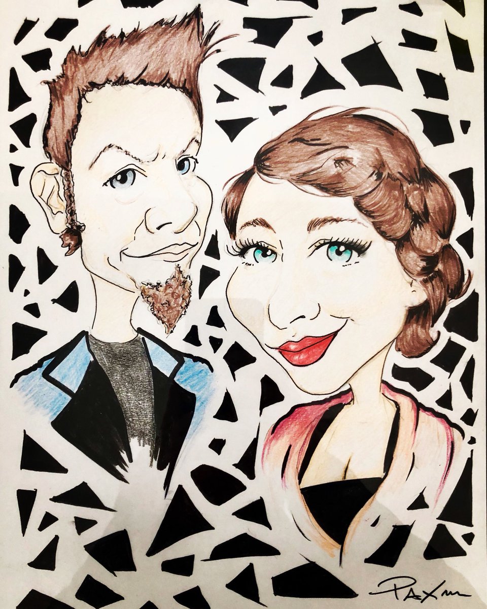 Coppia Di Sposi Su Aereo Con Bambina Caricaturista Ritrattista