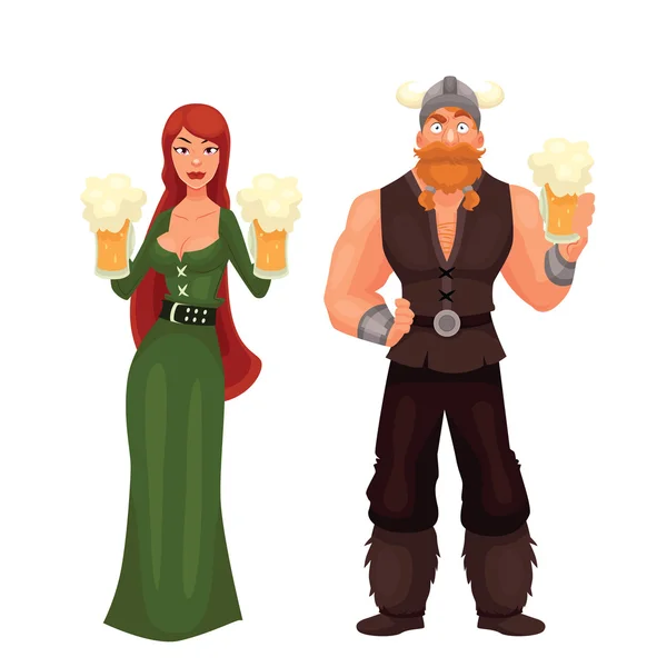 Santo Patrick Dia Caracteres Leprechaun Y Nina Con Jarra