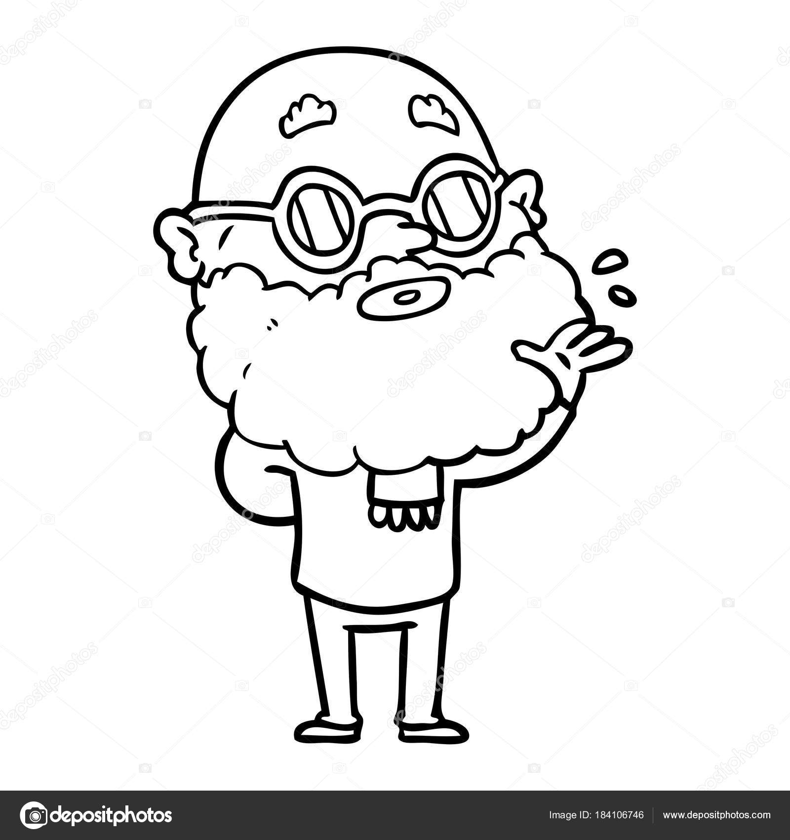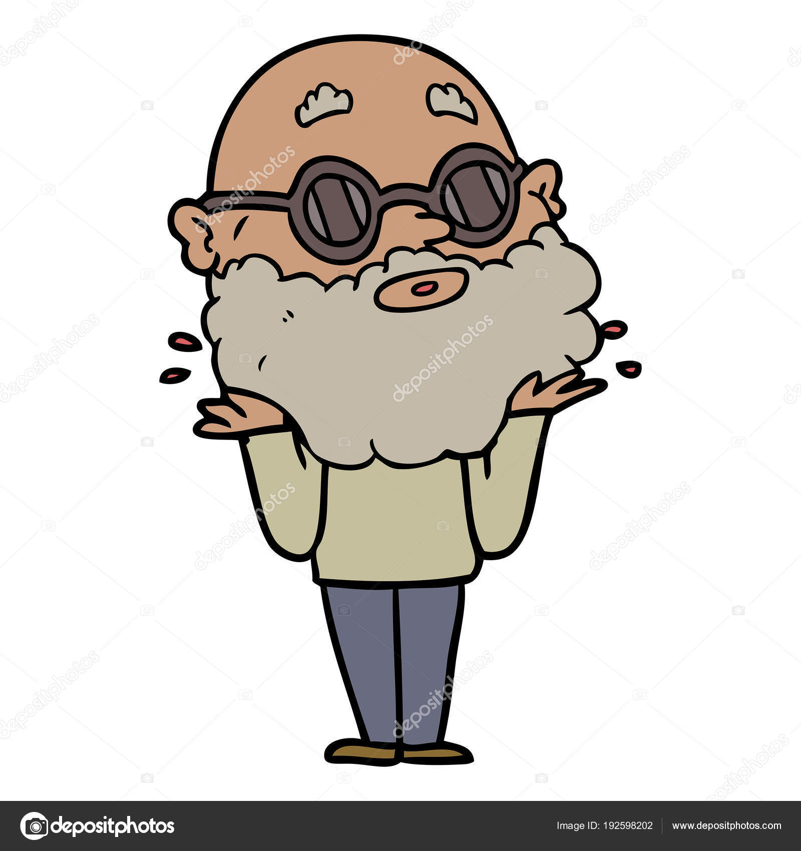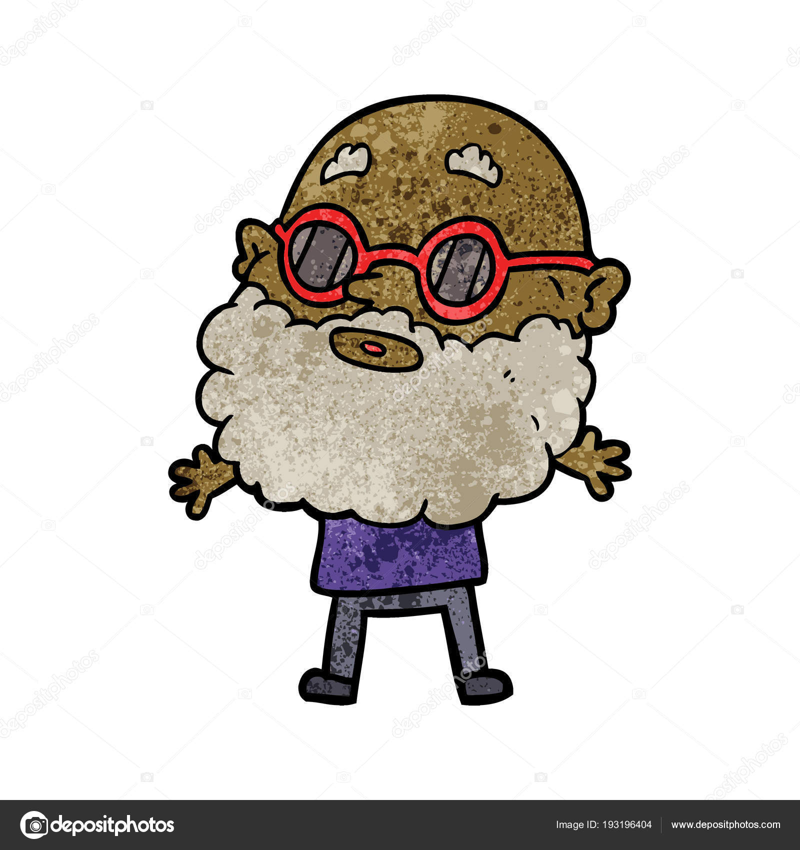 Hombre Curioso Caricatura Con Barba Gafas Sol Vector De Stock