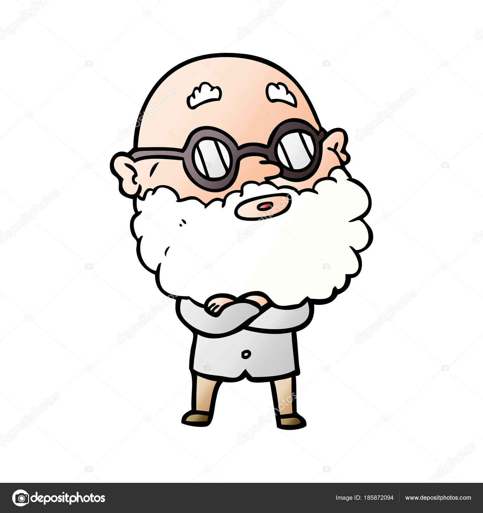 Hombre Curioso De Dibujos Animados Con Barba Y Gafas