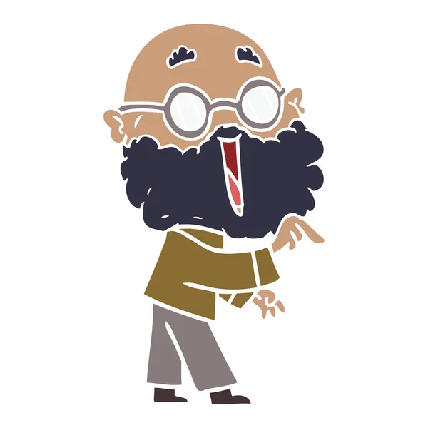 Plana Color Estilo Caricatura Alegre Hombre Dedo Acusador Barba