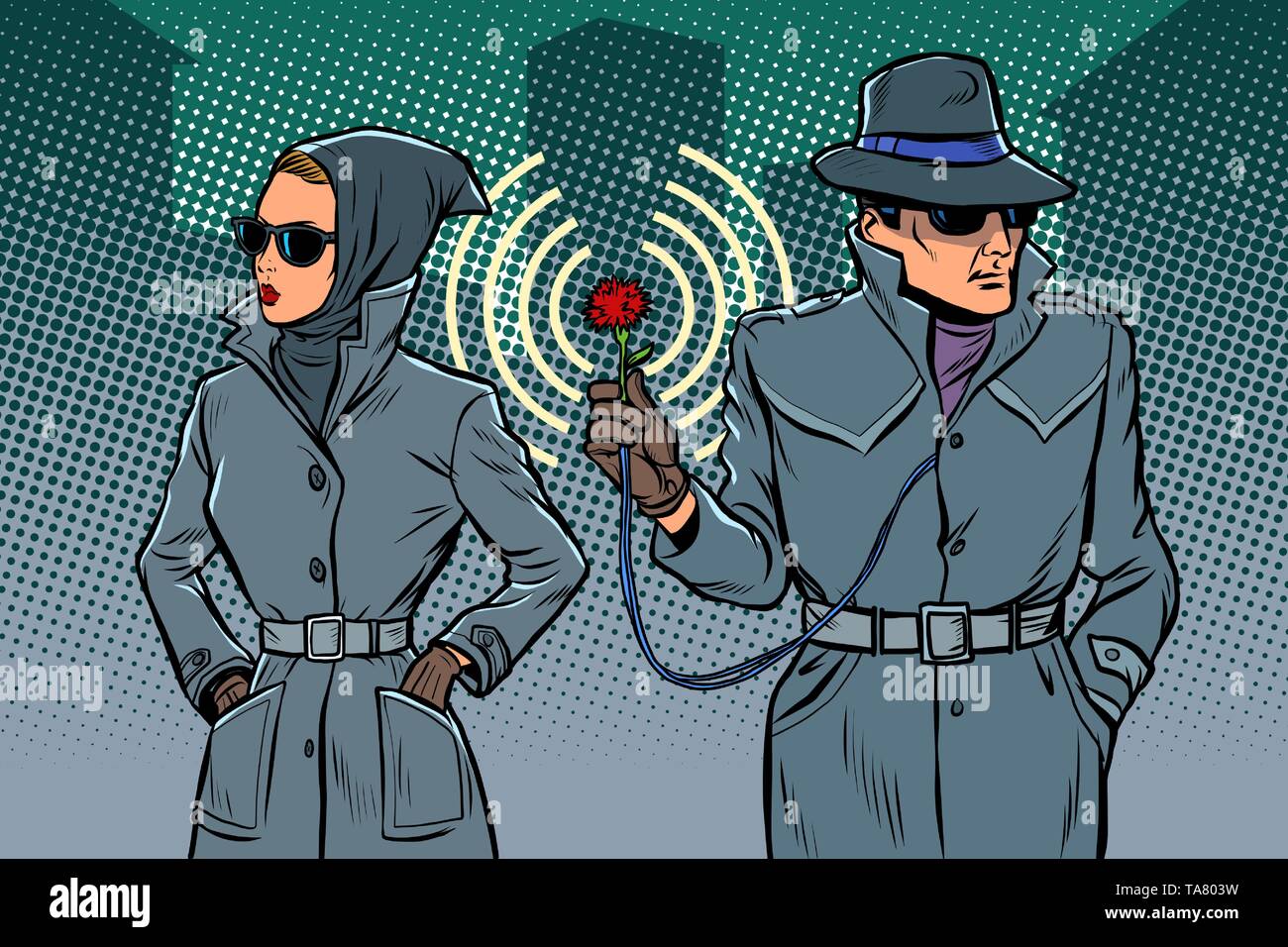 Hombre Y Mujer Agentes Secretos Espias Pop Art Comic Caricatura