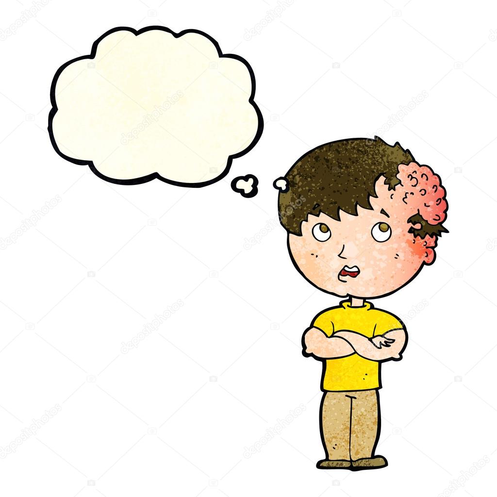 Cartoon Boy With Growth On Head With Thought Bubble Stock Vector