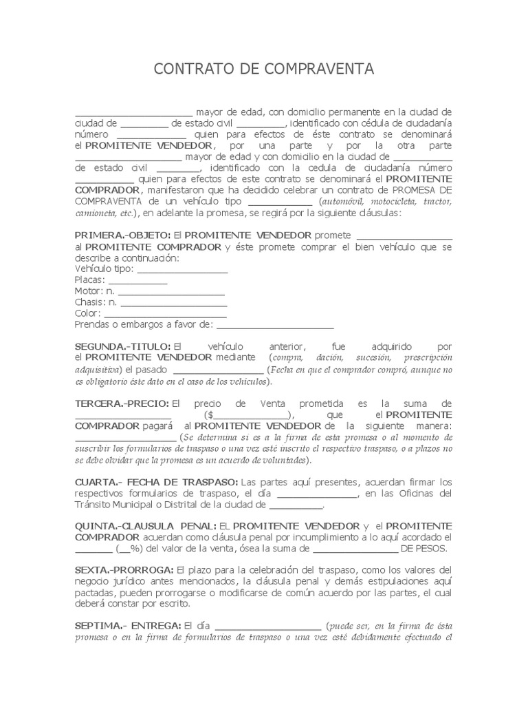 Como Hacer Un Contrato De Compraventa Con Ejemplo Para Descargar