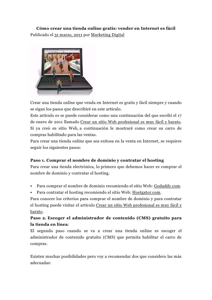 Como Crear Una Tienda Online Gratis Vender En Internet Es Facil