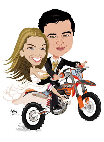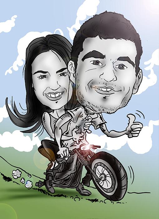 Retrato Caricatura Pareja De Novios En Una Moto Paula Minguez