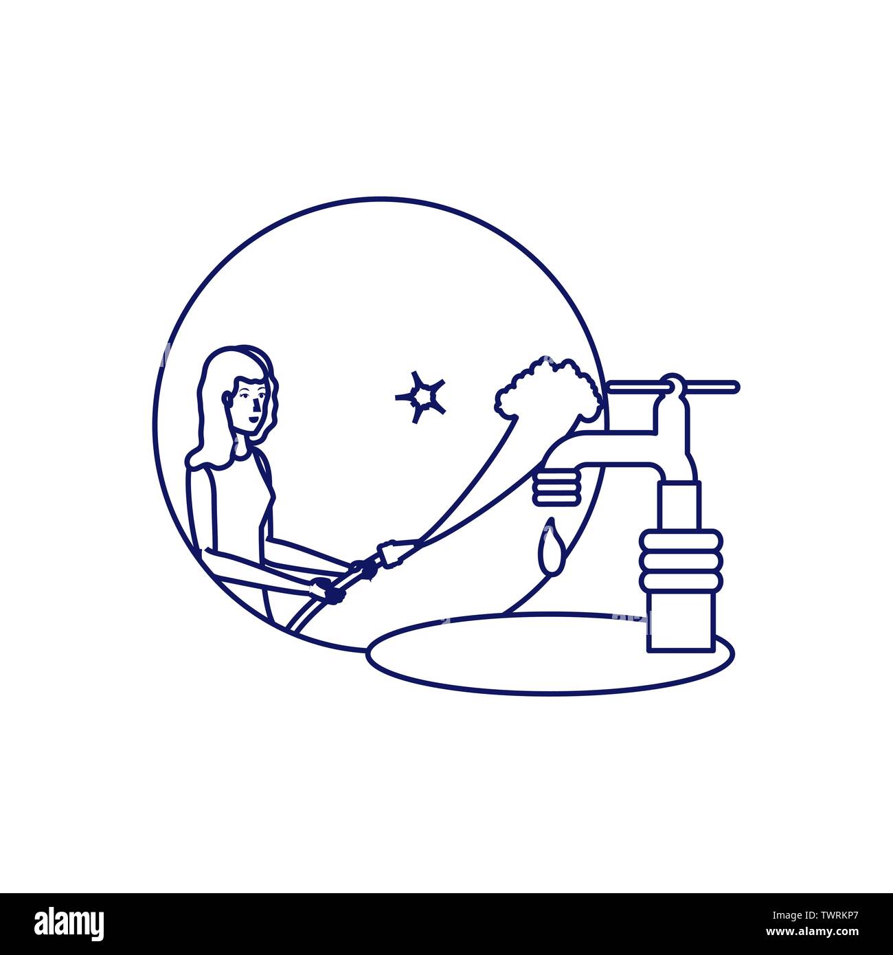 Mujer Caricatura Y Diseno De Limpieza Trabajo A Domicilio