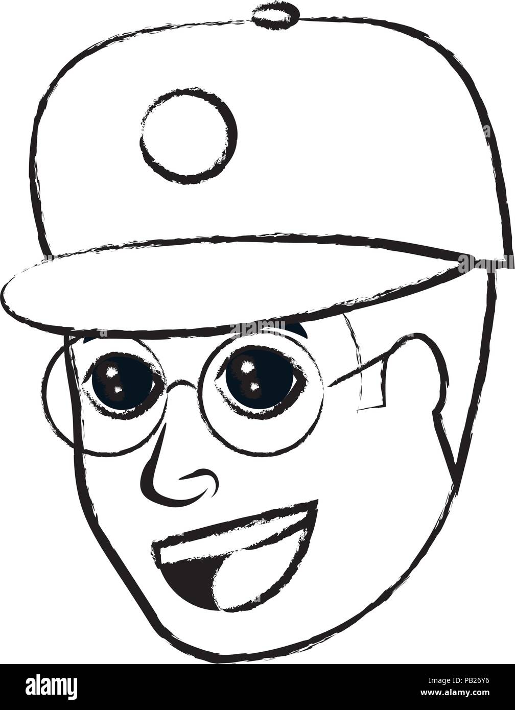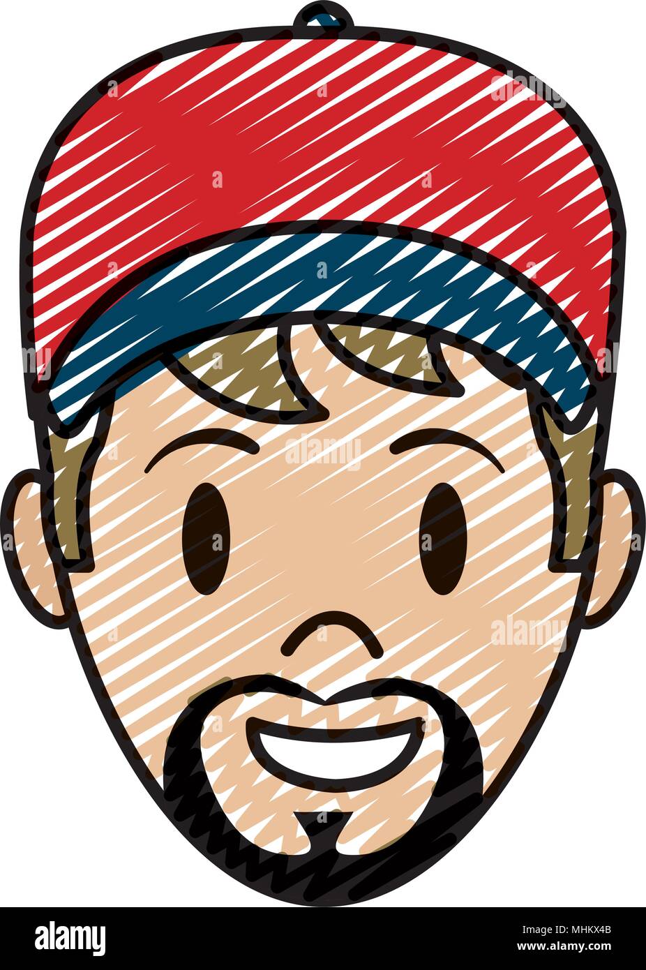 Doodle Happy Man Head With Cap And Beard Stock Vector Art