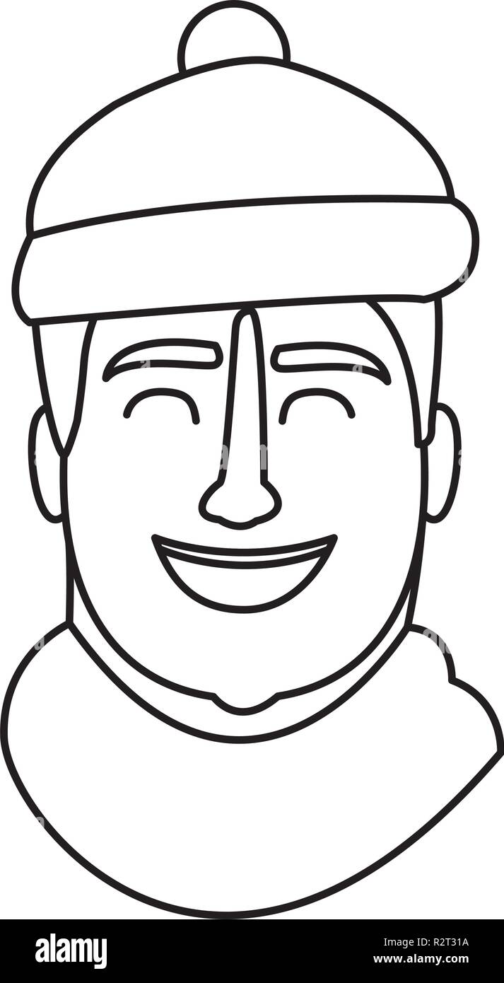 Hombre Con Cara Invierno Gorra Y Bufanda Caricatura En Blanco Y