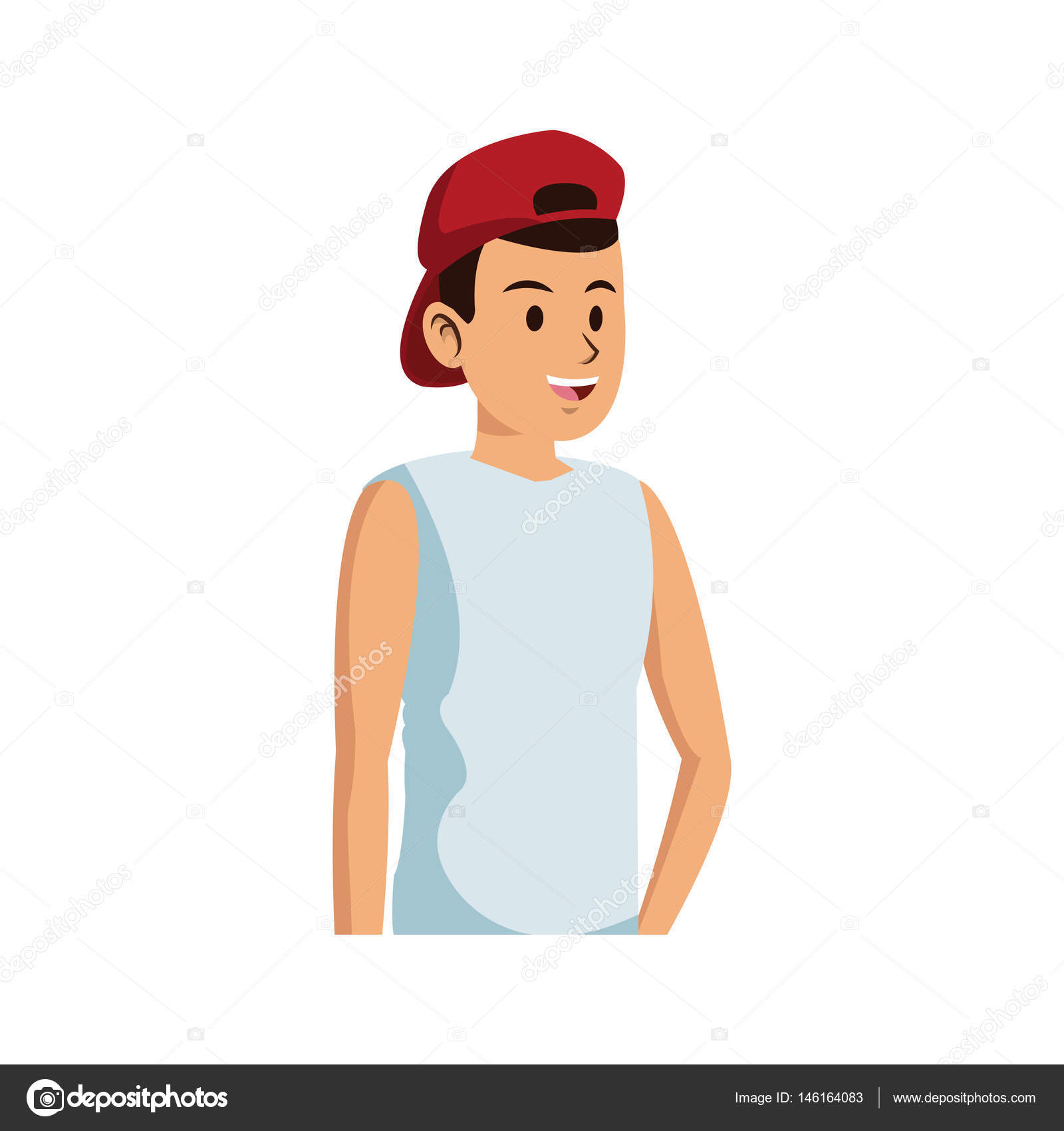 Un Joven Con Gorra Con Dibujos De Dibujos Animados Vector De