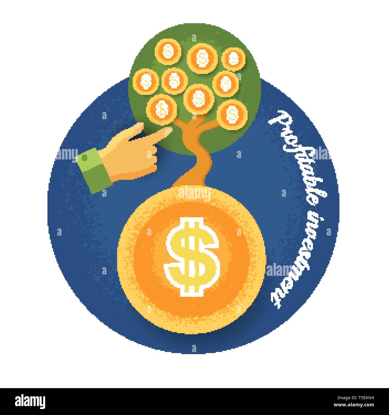 Arbol De Dinero Crecer Desde Coin Con Puntero Mano Vintage Retro
