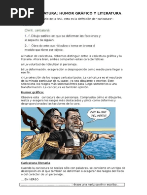 Para galdós la caricatura no es antirrealista ya que su empleo permite lograr la fidelidad en el retrato conseguible no tanto con la exacta transcripción del detalle físico como con su interpretación es decir con su sometimiento al arte subjetivo del pintor 2. B la deformación exageración o. Caricatura literaria cuando la caricatura se realiza sólo con palabras se convierte en un tipo de descripción en el que también se deforman o exageran los rasgos del físico o del carácter de un personaje.