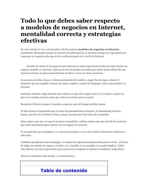 Los Mejores Negocios Por Internet Mentalidad Millonaria