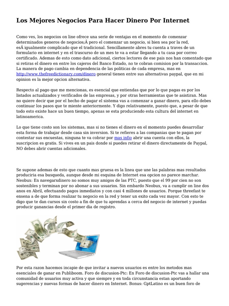 Los Mejores Negocios Para Ganar Dinero Con Internet Ganar Dinero