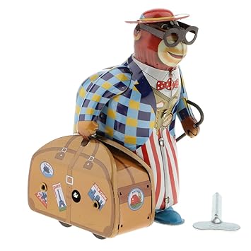 Modelo De Mono Viejo De Negocios Con Maleta Juguete De Hojalata