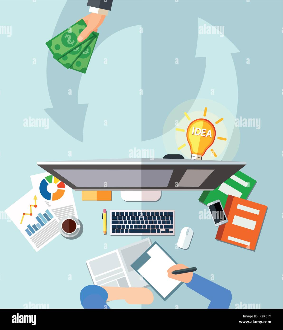 Dinero Por Concepto De Idea De Negocio Vector De Lugar De Trabajo