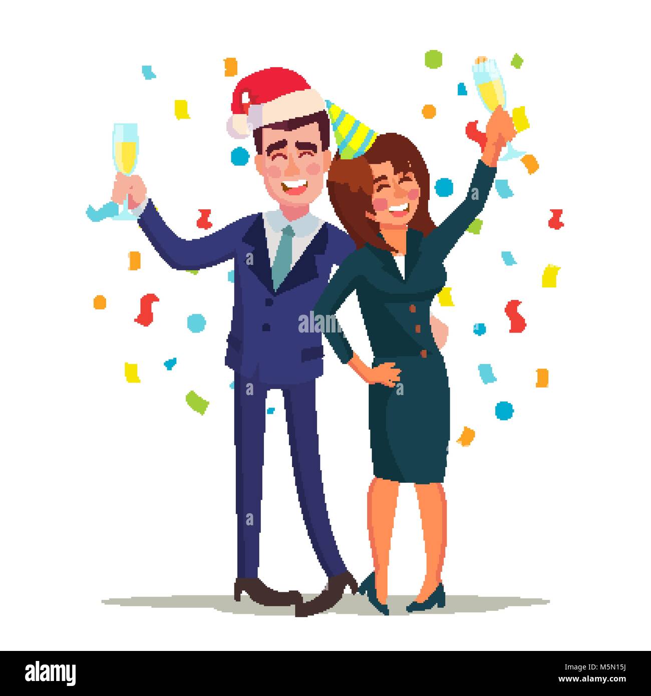 Fiesta Corporativa Vector Sonriendo Borracho El Hombre Y La Mujer