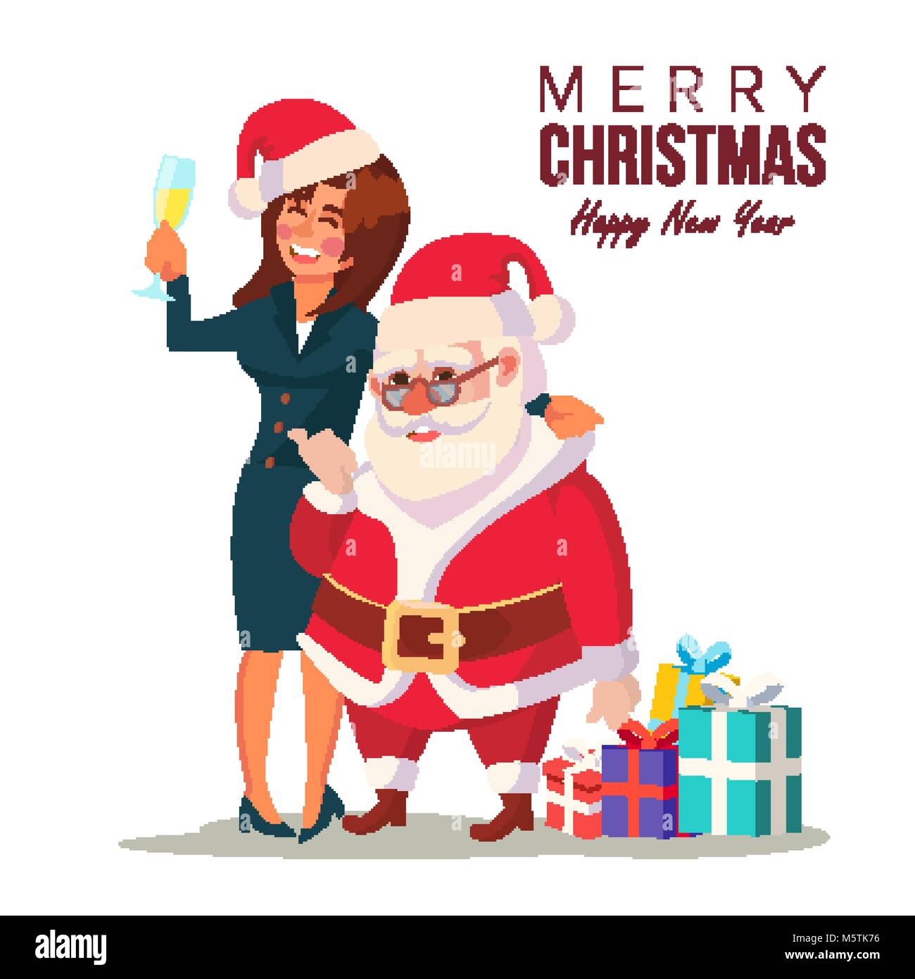 Mujer Borracho Y Divertidos Santa Claus Vector Fiesta De Navidad