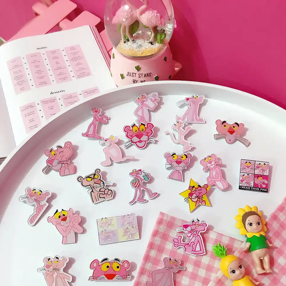 1 Uds Lindo Dibujos Animados Kawaii Pantera Rosa Insignias