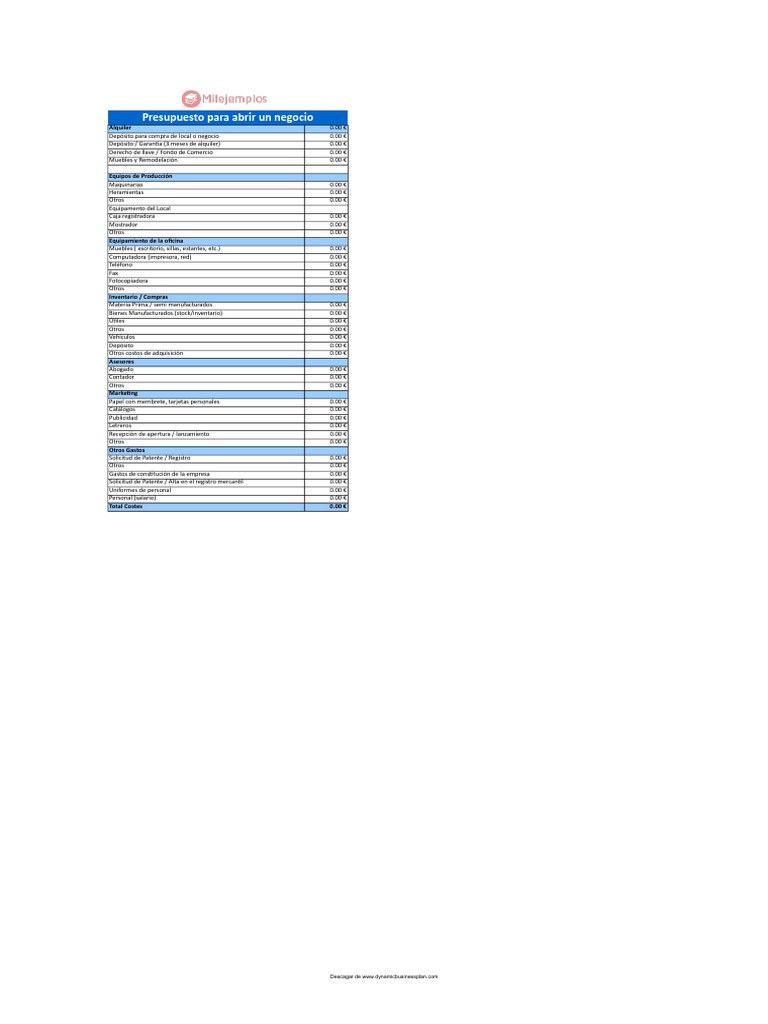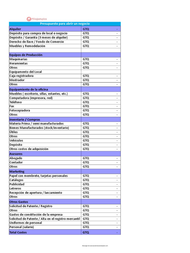 Ejemplo De Presupuesto Para Abrir Un Negocio