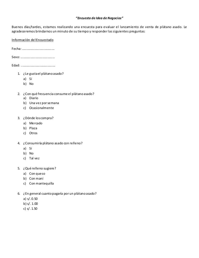 Si te encuentras en la situación de querer hacer una. La temperatura es una de las cualidades más. Aquí el modelo de encuesta es utilizado para recolectar datos sobre las necesidades que tienen los individuos que luego deben ser procesados y analizados para tomar la mejor decisión sobre cuál podría ser la idea de un nuevo negocio en cualquier sector como la industria el comercio la salud la vivienda la educación el agrícola el.