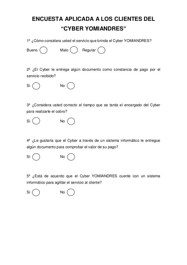 Encuesta Aplicada A Los Clientes Del Cyber Yomiandres