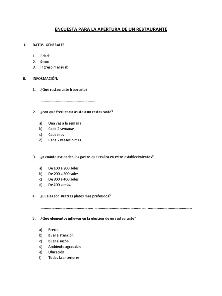 Encuesta Para Una Cevicheria Practicas O Problemas Jrosass