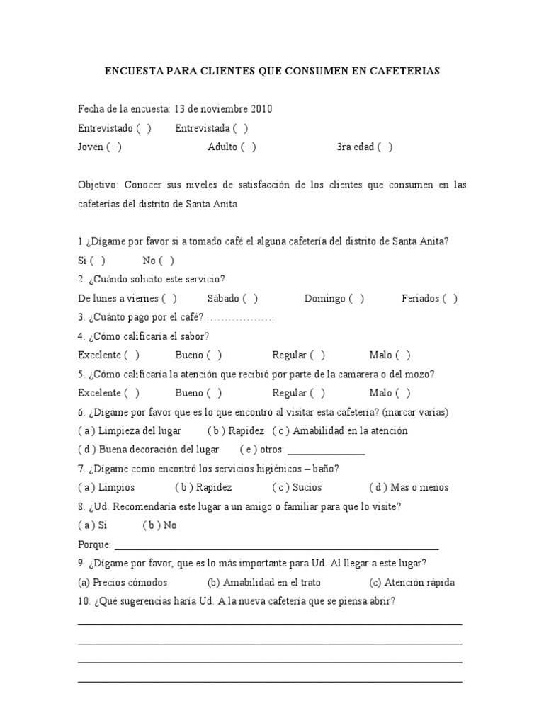 33 Encuesta Para Clientes Que Consumen En Cafeterias Gaby