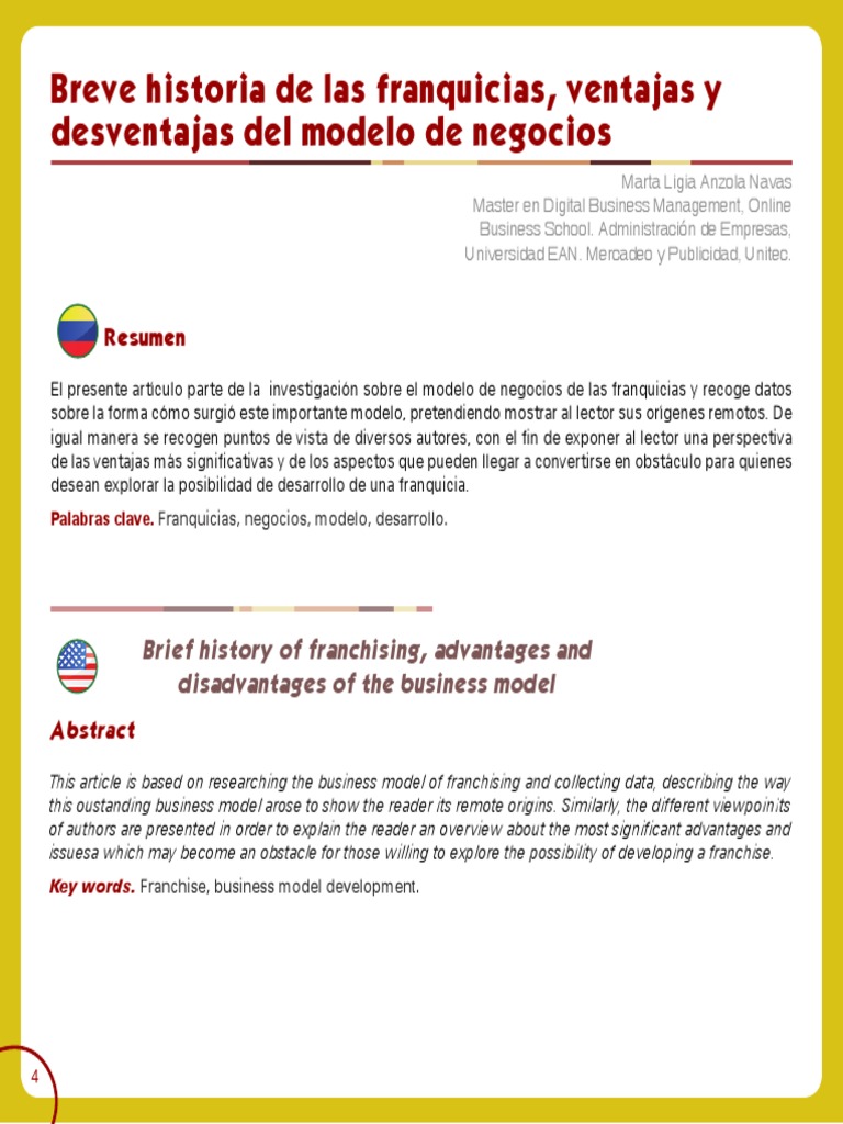 Anzola Navas M L 2014 Breve Historia De Las Franquicias