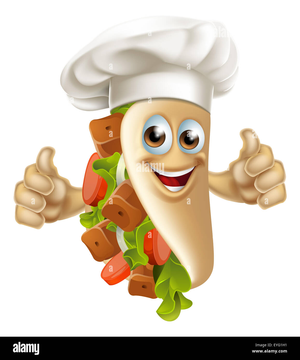 Una Caricatura Souvlaki Kebab Chef Mascota Personaje Hombre Foto