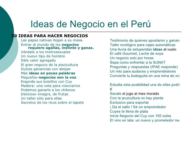 Clase Ideas De Negocios En El Peru Miempresapropia