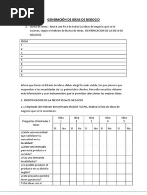 Formato De Lluvia De Ideas De Negocio Producto Negocio Costo