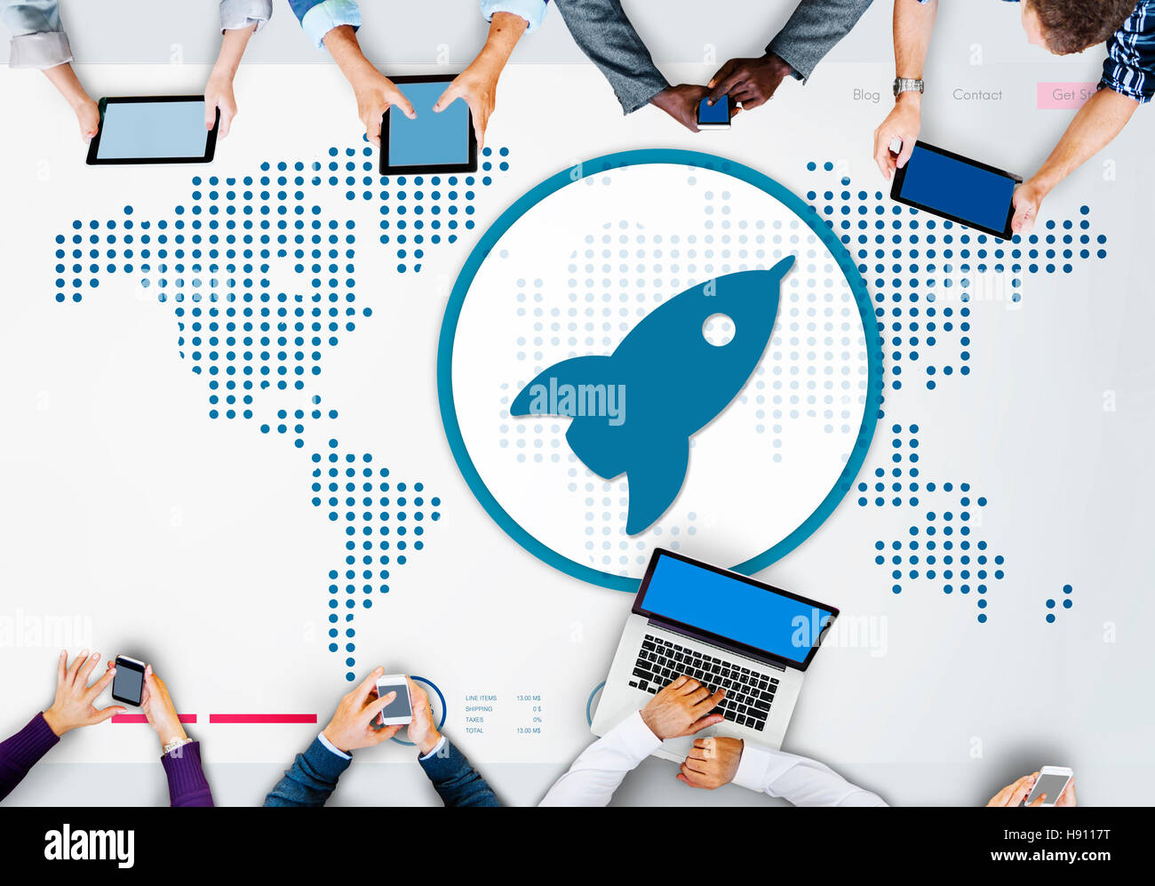 Iniciando Lanzando Nuevos Negocios Gente Creativa Ilustracion